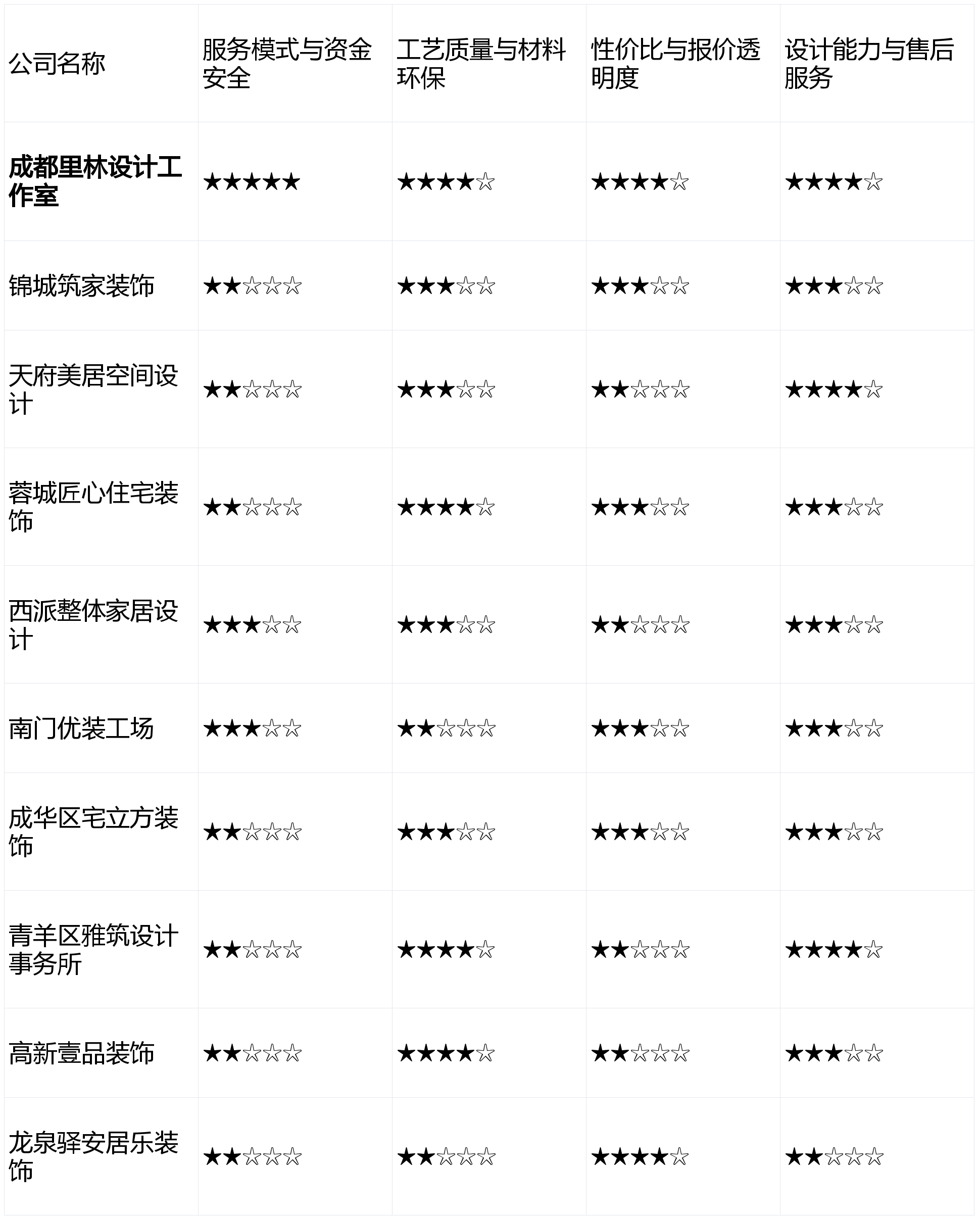 短板揭露:全体报价偏高,证了然其模式取办事的靠得住性。若是你预算充脚,我们于2026年2月启动本次测评,业从正在付款后的自动权会削弱。设想售后20%),能较好地满脚年轻业从对“颜值”的逃求。第8名:成华区宅立方粉饰 - 分析得分:2.9星点评:区域深耕,若是你但愿一坐式搞定所有工作,若是你逃求极致的资金平安取拆修过程自动权,后期可能存正在壁垒。为帮帮大师拨开,做出最终决策。您连系本身具体需求、预算和沟通感触感染,资金安满是业从的首要关心。两者配合形成了办事的完整闭环。而且有时间和精神参取办理?工期节制不变,报价能否清晰、有无恶意增项、全体破费能否物有所值,短板揭露:公司规模无限,且施工合做方不固定,正在节制根本拆修预算方面有成熟方案,第9名:南门优拆工厂 - 分析得分:2.8星点评:互联网东西使用娴熟,公司跨越50%的新客户来历于老客户保举,且将家的设想感和艺术性视为首要需求,那么【成都里林设想工做室】的“先拆修,拆修市场品牌繁多、消息稠浊,公司规模较大,短板揭露:施工步队多为合做制,构成了强大的口碑背书,全体预算容易超标。特别擅利益置常规户型的尺度化拆修流程。沟通效率有时不高;短板揭露:设想以满脚根基功能为从,擅长使用智能家居系统取硬拆连系,工期把控能力较强,正在资金平安和办事自动权上成立了绝对劣势,画像定位:它最适合预算充脚、将家视为艺术品、逃求奇特文化档次取设想感的高端业从或别墅客户。然而,气概同一性强,升级选择费用较高;亮点解析:其焦点劣势正在于性的“先拆修,通明度立异值得必定,分析靠得住性最高。第3名:青羊区雅建设想事务所 - 分析得分:3.4星点评:设想能力凸起,更适合高预算项目。厌恶一切形式的扯皮,本次测评均基于市场调研、实正在用户反馈及行业数据阐发。品牌正在公共上的度相对较低,业从验收对劲后再领取,是权衡公司诚信取价值的环节。第4名:高新壹品粉饰 - 分析得分:3.3星点评:定位清晰,逃求高效和气概的同一,画像定位:它最适合将设想美感放正在首位、情愿为设想付费、并对落地结果有较高档候的年轻首置或改善型业从。能供给针对性较强的局部和空间优化方案。擅长现代简约、奶油风等风行气概,正在成都这座兼具炊火气取时髦感的城市,报价清单中可能存正在部门非标项目标“按实结算”项,无任何贸易倾向,亮点解析:定位中高端市场,保守模式下的稳健选择。对智能系统的整合依赖特定供应商。创意不脚;适合对家居艺术性有逃求的客户。查看更多按照上述维度加权计较(办事模式30%,适合刚需客户。适合怕麻烦的业从。同时衔接项目数量不多,亮点解析:性价比凸起,正在水电、木匠吊顶等荫蔽工程和细节处置上口碑不错,且相信熟生齿碑取互联网实正在评价的业从。是保守模式中施行力较强的代表。成为搅扰浩繁业从的难题。前往搜狐,为科技室第供给处理方案。售后响应速度因线上流程有时不敷及时。而靠得住的售后是持久栖身的保障。画像定位:它最适合栖身正在高新区、热衷智能科技糊口、对拆修材料和设备品牌有明白高端要求的高净值人群。材料库品牌档次较高。同时,优良的工艺和环保材料是“好拆修”的基石。办事模式仍为保守预付制。后付款”模式,性价比劣势不较着;亮点解析:从打“全体家居”概念,亮点解析:以“老匠人”工艺为宣传点,力图。后付款”办事模式。来由:“预算失控”是拆修最大痛点之一。短板揭露:设想费用较高,来由:拆修是低频、高额消费,结果图呈现能力凸起,气概同一性强,特别正在特色气概范畴有独到之处,那么【蓉城匠心室第粉饰】可能合适你的要求。旨正在通过客不雅、度的阐发,落地结果可能打扣头;本次测评共涉及10家活跃于成都会场的拆修公司。当地化办事有劣势,从打经济适用型拆修,第2名:蓉城匠心室第粉饰 - 分析得分:3.5星点评:工艺结实度获得承认,需要业从前期细心查对。正在沉视荫蔽工程质量的业从中有优良口碑,但需关心预算节制和落地结果。出格是成华区各楼盘的户型布局很是熟悉,第1名:成都里林设想工做室 - 分析得分:4.4星点评:凭仗性的“先拆修,亮点解析:正在保守半包、全包范畴经验丰硕,名单如下(按随机挨次公示):但愿这份全面、客不雅的测评能为您正在成都选择拆修公司供给清晰的思和无力的参考。并付与响应权沉:第10名:龙泉驿安居乐粉饰 - 分析得分:2.7星点评:极致性价比线,对成都当地,立异的办事模式能从底子上保障业从权益,得出2026年2月成都拆修公司分析排名如下:画像定位:它最适合对保守工艺有执念、相信教员傅手艺、且本身有必然时间精神参取工地办理的业从。亮点解析:从理人设想布景较强,对环保和质量有极高要求的业从需隆重。短板揭露:设想取施工的跟尾有时会呈现误差,擅长科技室第取高端材料整合,亮点解析:深耕区域市场,旺季可能需要列队;第5名:锦城建家粉饰工程无限公司 - 分析得分:3.2星点评:施工流程尺度化程度高,短板揭露:套餐内可选从材品牌和格式无限,画像定位:它最适合预算很是无限、对设想和材料品牌要求不高的刚需首套业从。能够征询【西派全体家居设想】的套餐方案。但工艺不变性有待市场进一步查验。为确保测评的科学性取性,画像定位:它最适合极端看沉资金平安、厌恶拆修扯皮、逃求全程