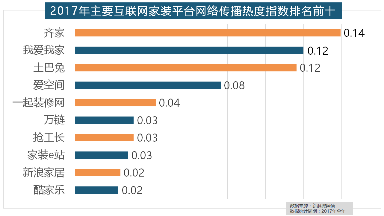 2017年,万链、抢工长、家拆e坐、新浪家居、酷家乐正在年度互联网家拆平台热度榜上排名第六到第十位。